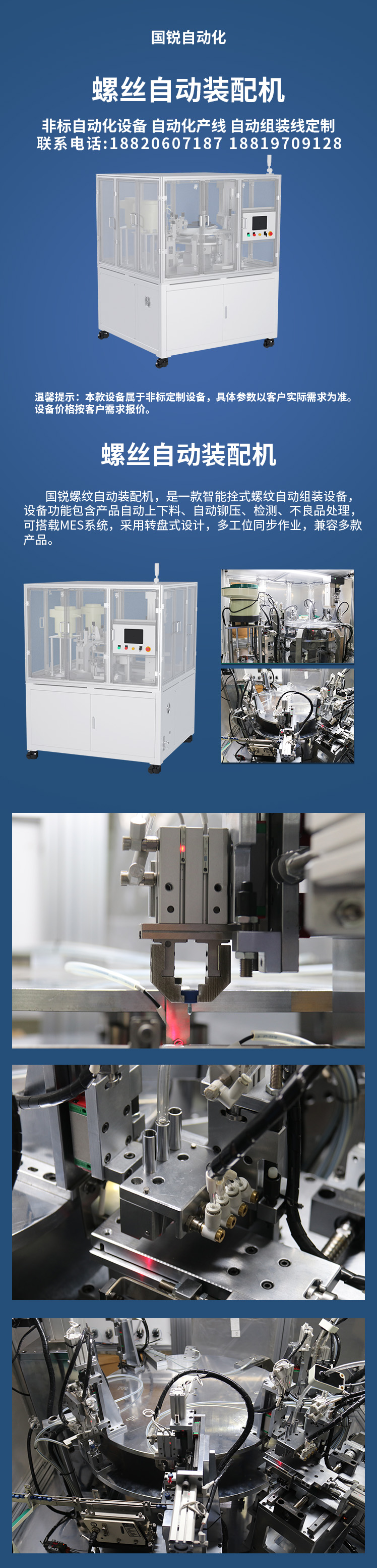 占地面积:2.56㎡电源:AC220V55Hz工作气压:0.5MPa产品:4C-52螺丝上料方式:振动盘上料装配方式:铆压检测内容:上料检测、装配检测检测方式:对射光纤传感器检测产能:1000PCS/小时 配备人数 :1人补料及下料