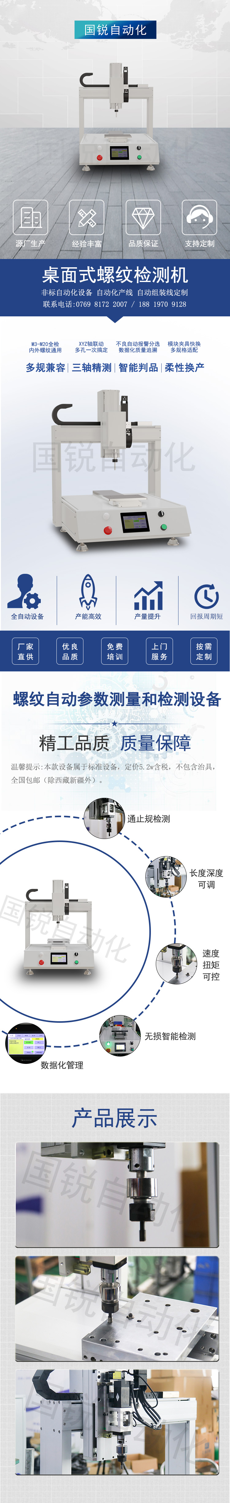 ●高精度伺服驱动,定位准、运行稳;行程按需定制,适配不同规格螺纹检测;助力高效完成多方位检测动作。