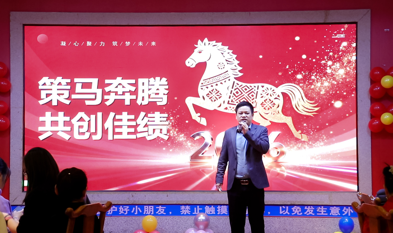 面对当下竞争激烈的市场环境,我们面临价格竞争、项目交期、服务保障的三大核心挑战,并布局2026四大战略(双重赛道/深耕多领域/拓展海外市场发展方向、成本管控、项目交期、优质服务),同时在场肯定了全体同仁的并肩付出,新的一年,新的目标,相信通过我们共同努力与拼博,一定能够达成目标,最后送上暖心的祝福,祝大家:马年大吉、身体健康、心想事成、万事如意!