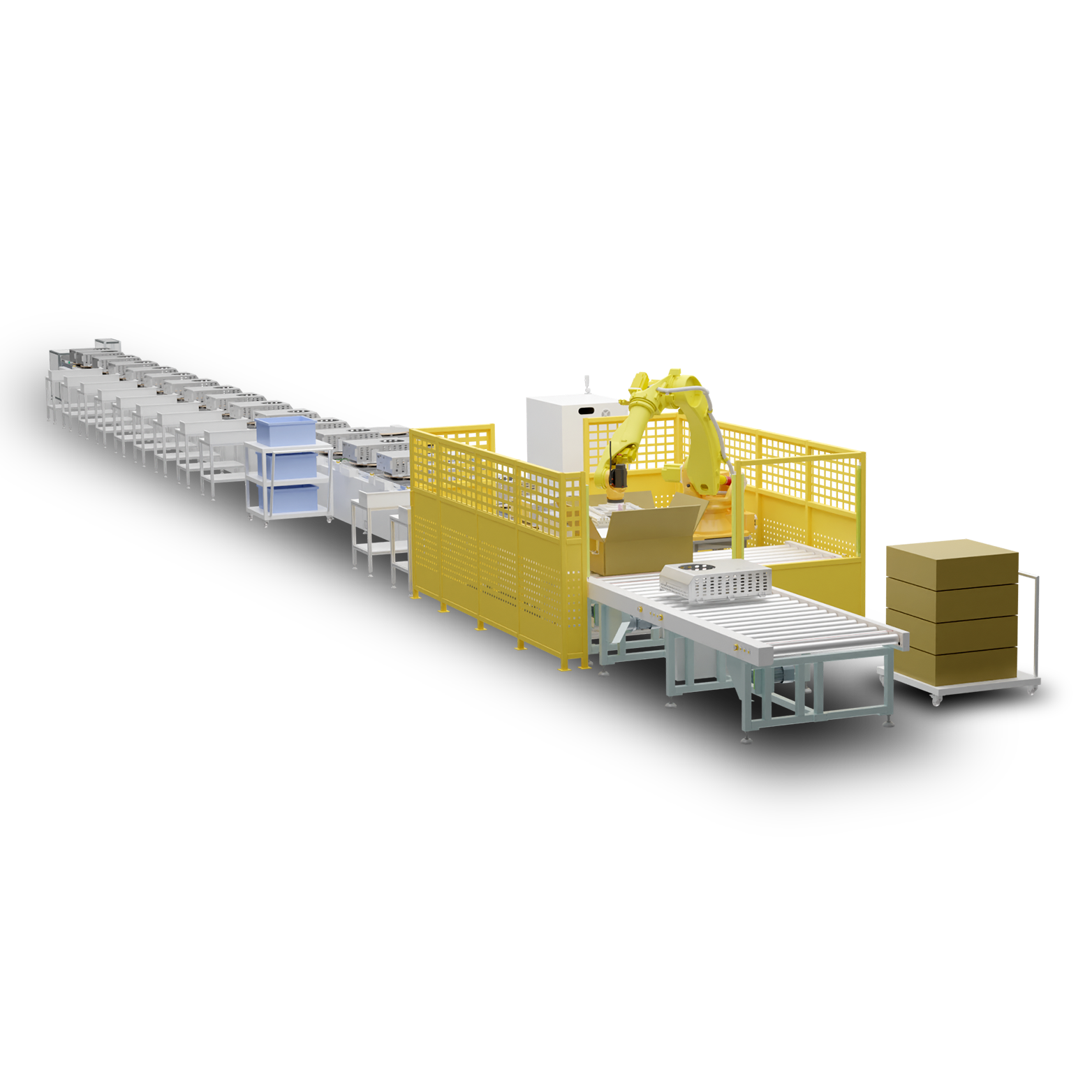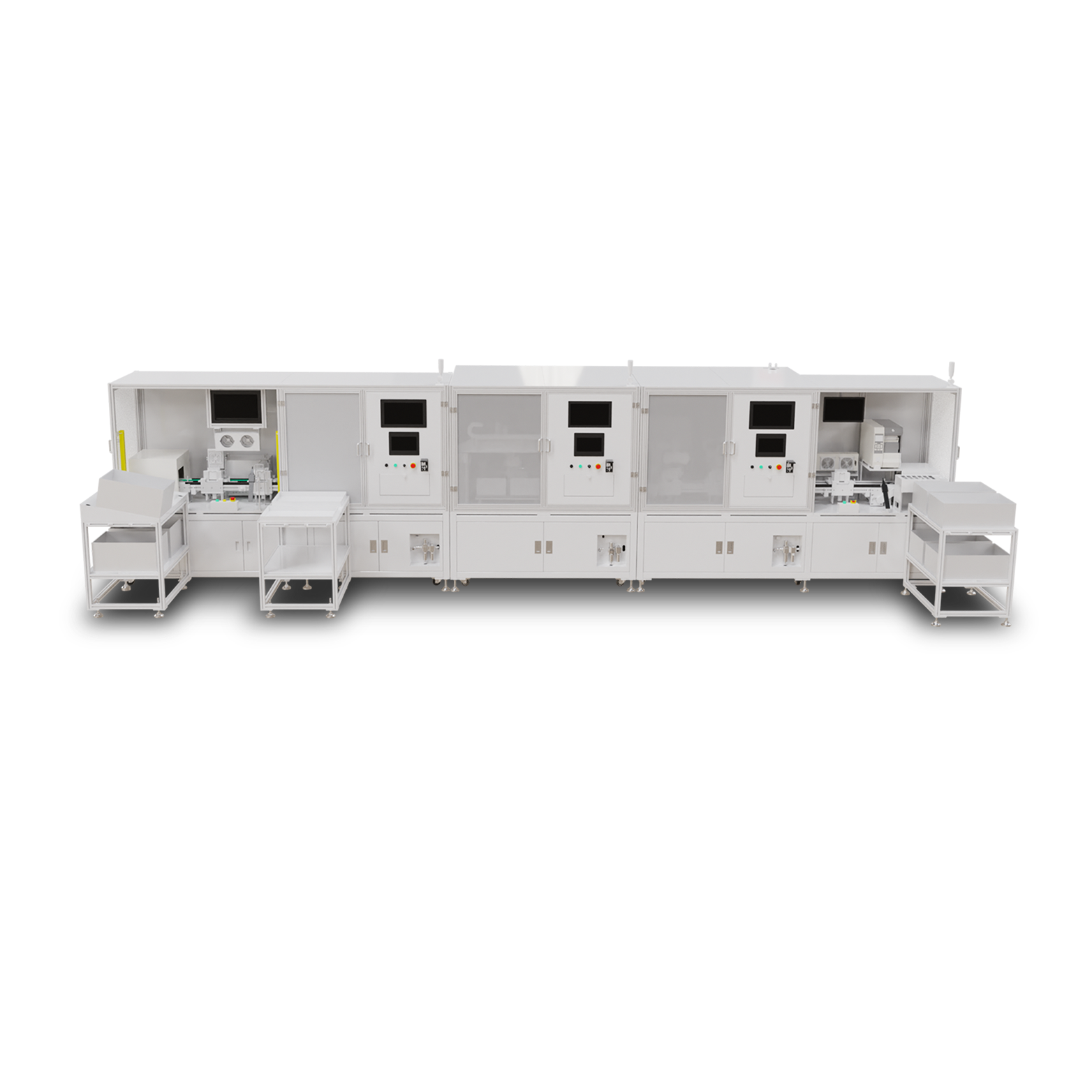 产线集成各工件自动上下料、组装、焊接、综合测试、镭雕等功能,产线布局简单紧凑,模块化设计,采用分度转盘实现治具共用,兼容多款产品同时作业,生产效率高。MES系统实时监控生产过程,支持产品追溯。